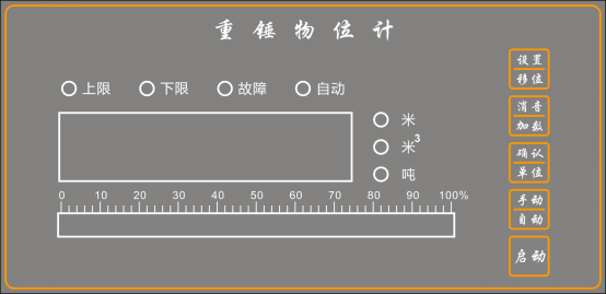 ☆ 橫式光柱顯示物位的測量百分比及重錘的運動狀態(tài)。